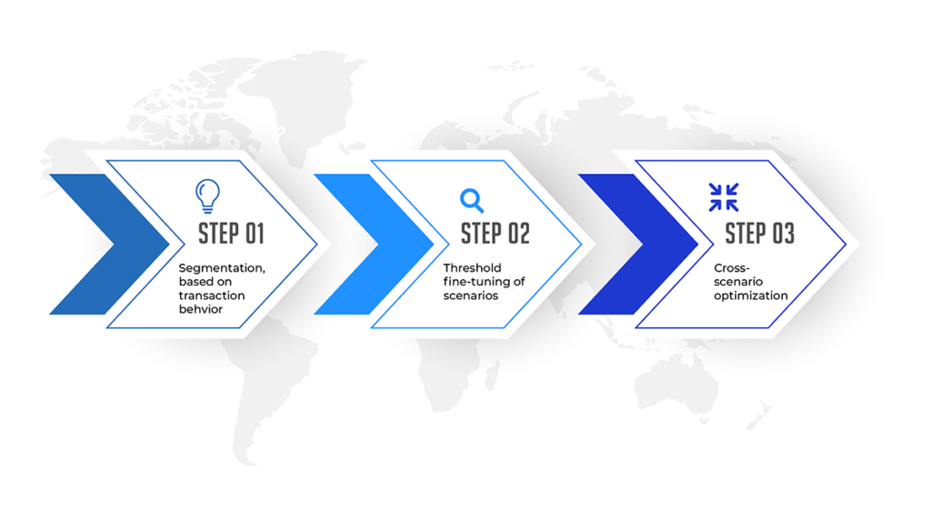 New customer segments were introduced – based on customer transaction behavior and risk level. An automated process for threshold fine-tuning was recommended. This process was applied at a scenario and segment level to reduce the false positive alerts. And it was found to be the best-fit approach to manage legacy scenarios.